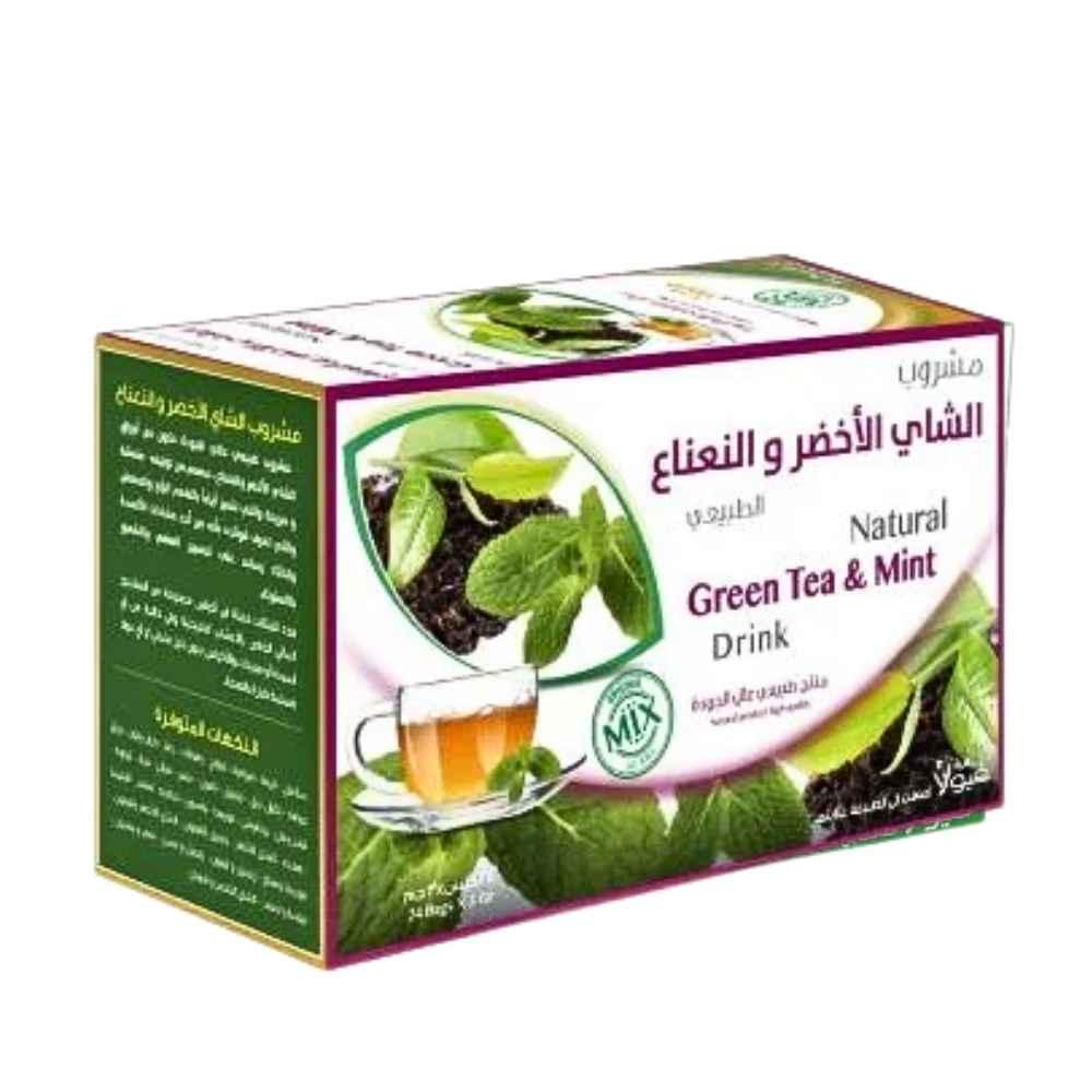 - 🍃 شاي أخضر طبيعي 100% ممزوج بأوراق نعناع عالية الجودة.