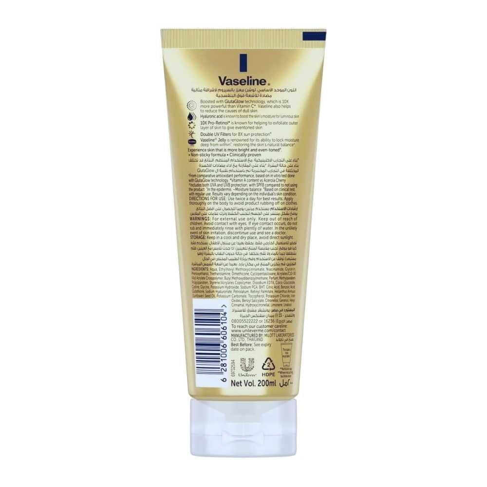 استعيدي نعومة وإشراقة بشرتكِ مع لوشن فازلين جلوتا هيا، بتركيبته المتطورة المدعمة بالسيروم وتقنية GlutaHYA، التي تمنحكِ تفتيحًا ملحوظًا وترطيبًا يدوم طويلًا. يحتوي على الجلوتاثيون وحمض الهيالورونيك والنياسيناميد بتركيز أعلى 10 مرات من المعتاد، ليعمل على توحيد لون البشرة، تقليل البهتان، وحبس الرطوبة داخل الجلد.